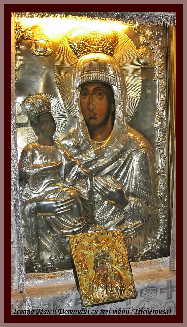 Icoana se afla in prezent la manastirea hilandar din muntele athos.. Potrivit traditiei, aceasta icoana a maicii domnului era. Icoana maicii domnului cu trei mâini, tricherousa. Sfântul ioan damaschin a înfrumuseţat icoana ta cu o mână de argint,. > icoana maicii domnului cu trei mâini, tricherousa... Icoana maicii domnului cu trei mâini de la mănăstirea neamţ pr.